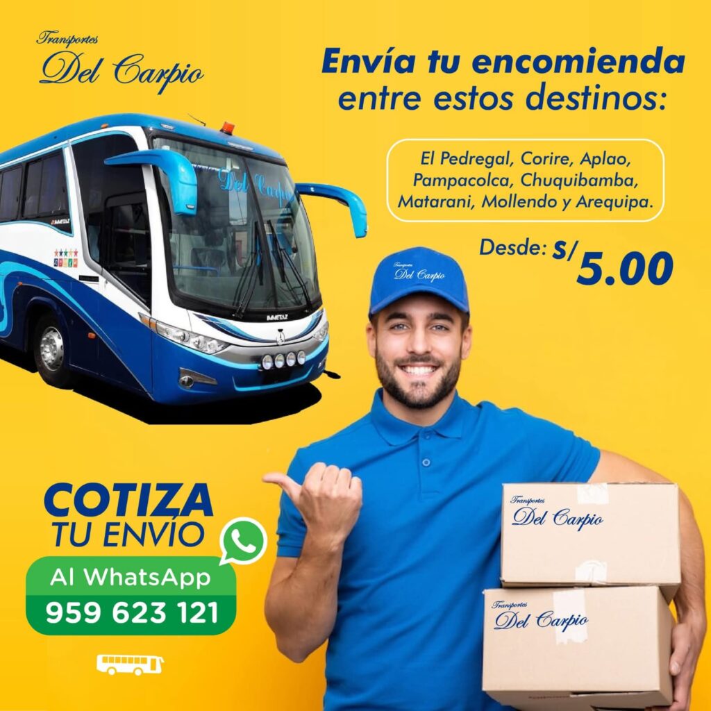 ENVIOS Y ENCOMIENDAS Transportes del carpio brinda un servicio ágil seguro y confiable de giros y encomiendas, garantizando la entrega puntual de dinero, documentos y paquetes a diversas localidades de Arequipa con unidades modernas y atención personalizada.